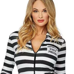 Everyone will think you got arrested for looking so good when you wear this jailbird catsuit costume. This skintight costume will accentuate your natural curves and leave you feeling sexy and comfortable all night long! Add the included belt and advertise your crime on the included chalkboard for a complete look!