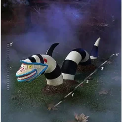 Is that a giant sandworm crawling toward you? This three-piece Beetlejuice sandworm groundbreaker takes your space from ordinary to extraordinarily scary! By using the included stakes to keep it in place you can celebrate the incredible movie and add a spooky vibe to your home.
