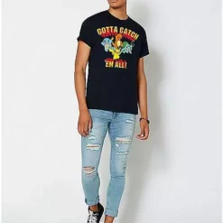 Look just like an expert Pokemon trainer by rocking this cool Gotta Catch ‘Em All T Shirt as part of your casual look. This awesome tee features the original starters Squirtle, Bulbasaur, and Charmander on the front as well as everyone’s favorite mascot Pikachu! Any Pokemon fan will love adding this tee to their collection.
