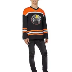 Rep your favorite store year-round with this Spirit Halloween Hockey Jersey! This black and orange jersey, which sports the number 31 on the back, will complement the wardrobe of any Halloween fanatic.